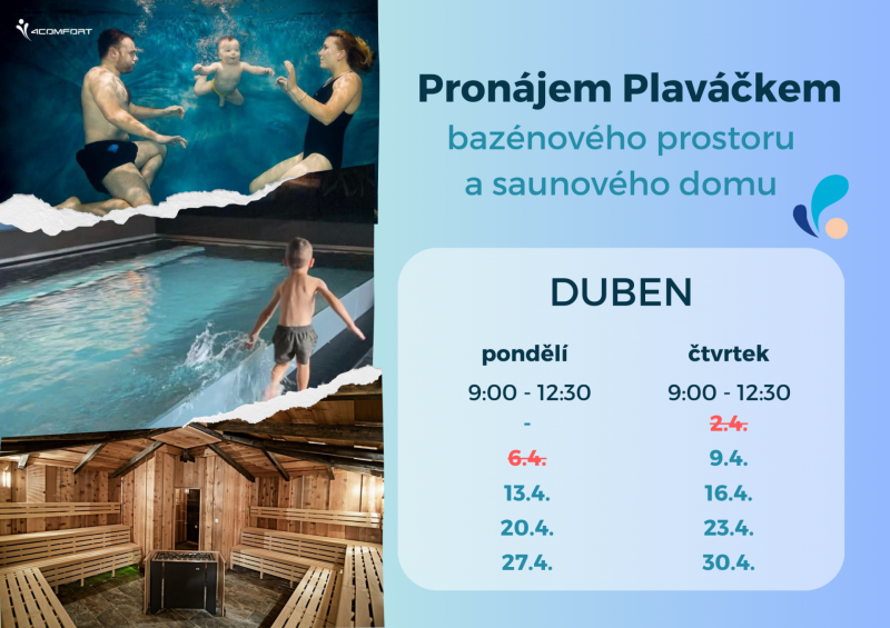 PRONÁJEM PLAVÁČKEM - DUBEN-ČERVEN